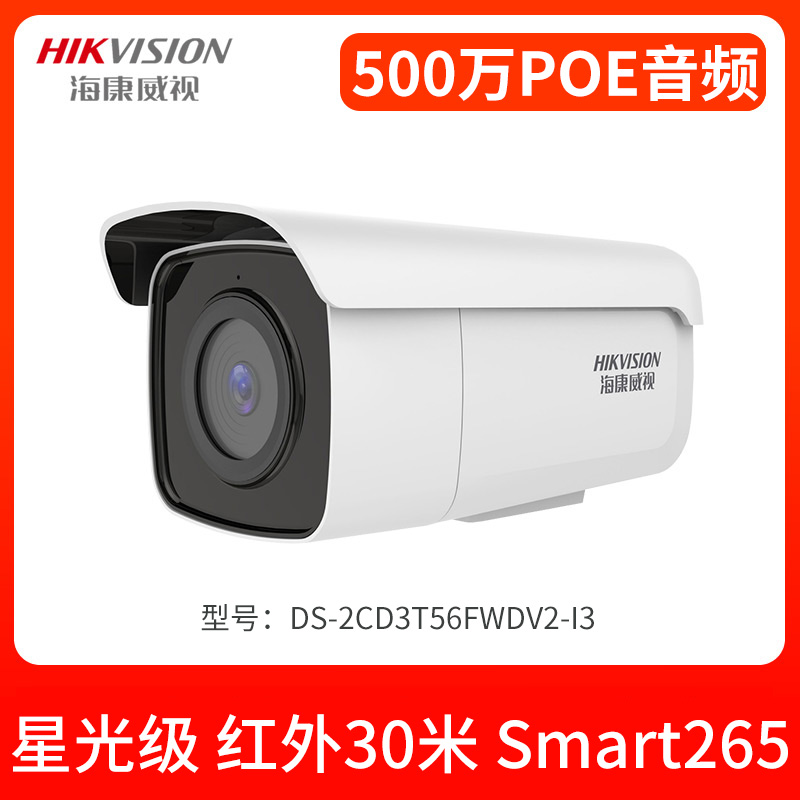 • 海康威視(HIKVISION)500萬星光級(jí)可錄音 監(jiān)控器室外紅外槍機(jī)DS-2CD3T56FWDV2-I3
